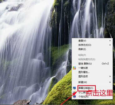1.右键单击屏幕的空白区域,然后在下拉菜单中单击屏幕分辨率。
