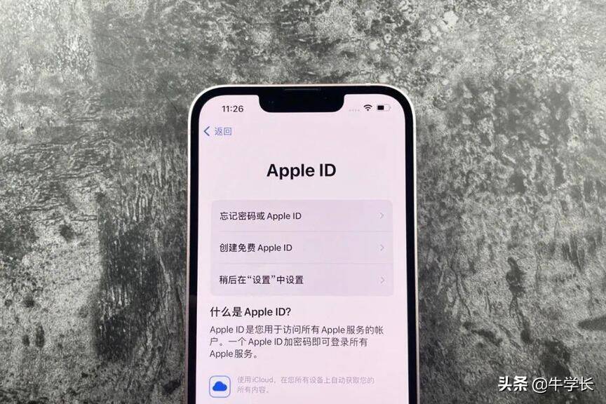 当购入一台新iPhone时,在开机设置时,会出现“Apple ID”界面。