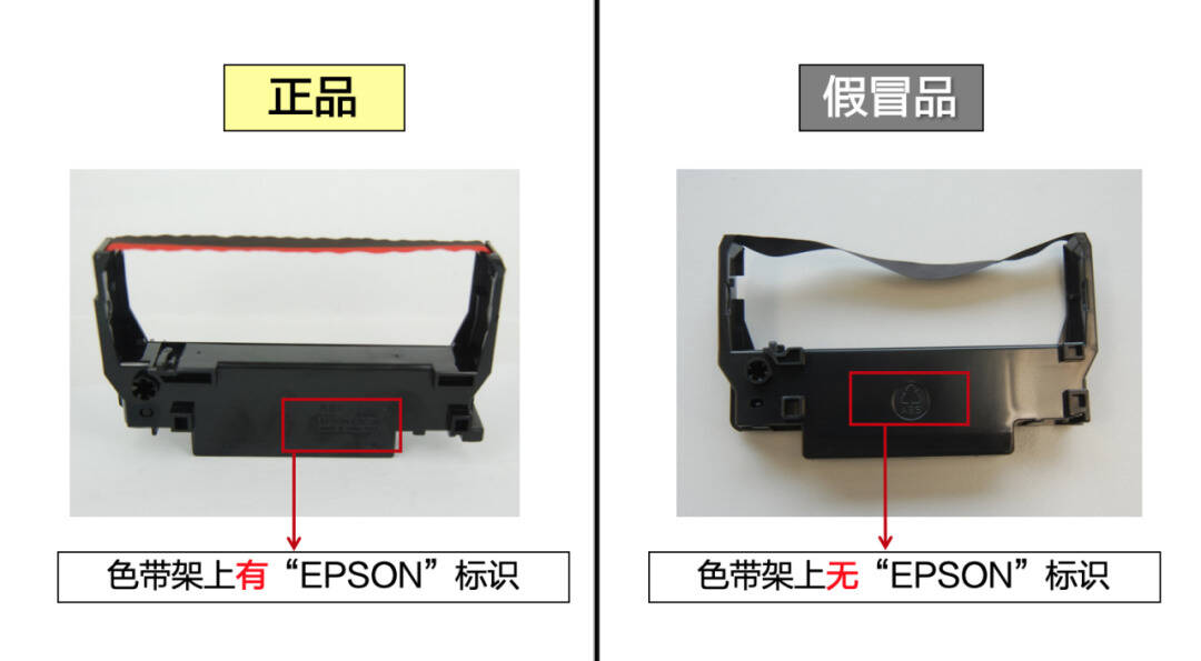 观察里面色带架的小细节也是辨别真伪的重要步骤。正品色带架上有凸印的爱普生标识,而假冒伪劣产品则无爱普生标识。