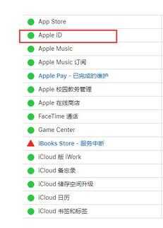 1.单击此处查看Apple的“系统状态”页面列表。如果Apple ID不是绿点。