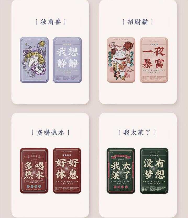 独角兽/招财猫/多喝热水/我太菜了,四款与众不同的正反面,反正我是想拥有。