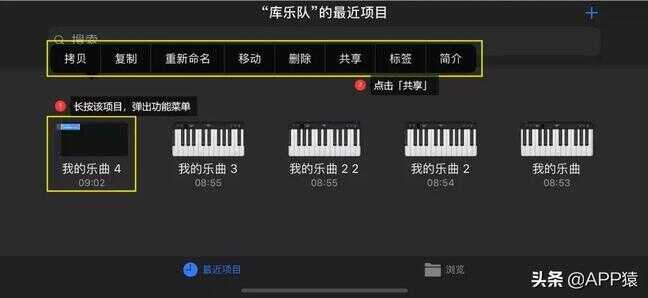 二、将音乐文件下载到苹果手机里边后,需要借助iOS系统自带的「库乐队」APP,将音乐文件导入到苹果手机的铃声库中。