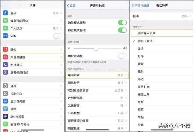 我们在系统「设置」-「铃声与触感」-「电话铃声」,就可以找到已导入的音乐,点击设置为铃声即可。