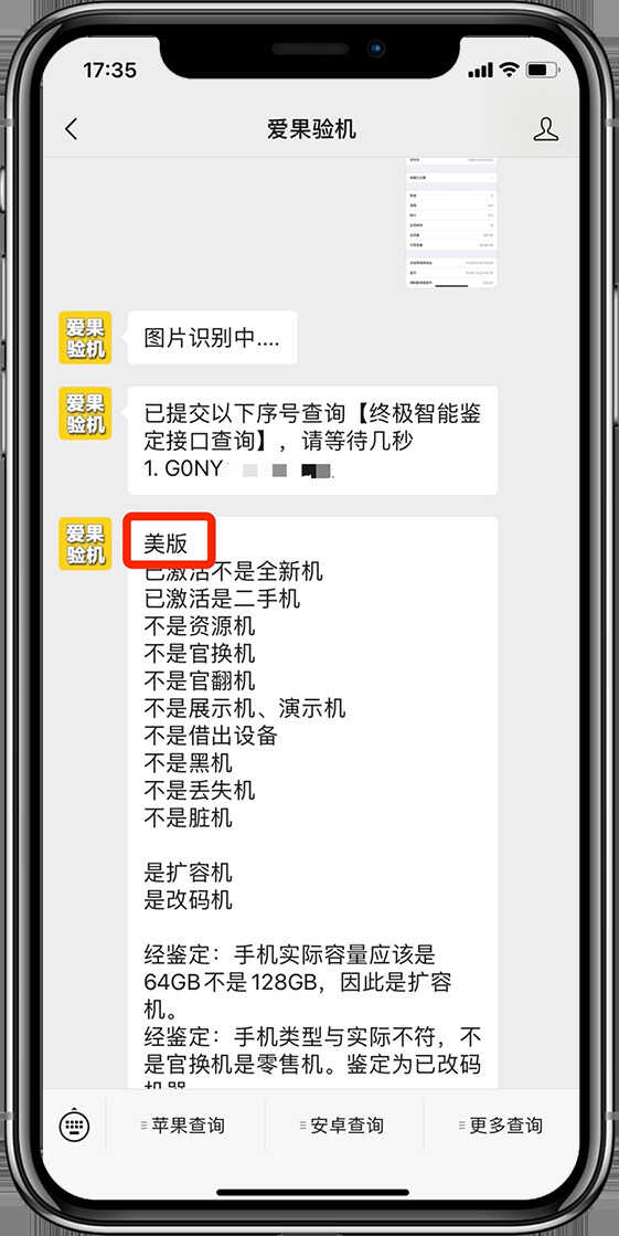 电池健康也可以作为判断手机新旧的依据,如果低于80%,就说明是使用了好些年的手机。除此之外,大家还可以在购买iphone之前查询一下序列号,可以检查出机器的真实信息,包括激活日期,内存容量,销售地,销售类型等等。