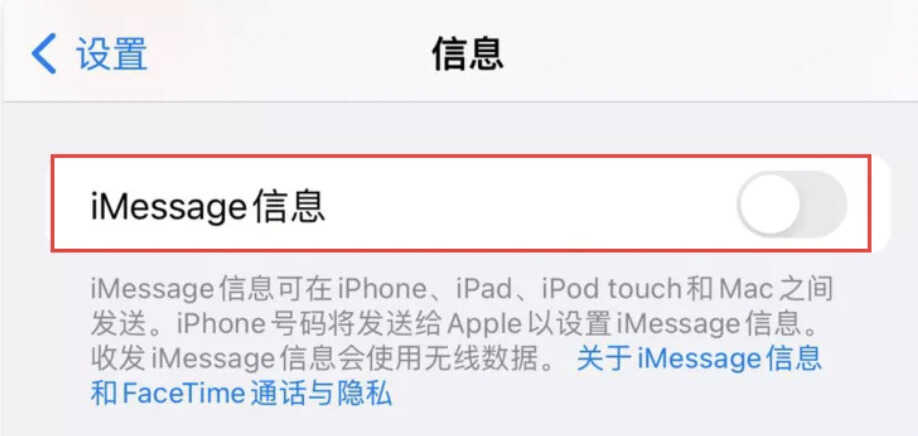iMessage 的垃圾短信我们需要进入手机的设置—信息,进入后我们将这里的「iMessage 信息」关闭即可。