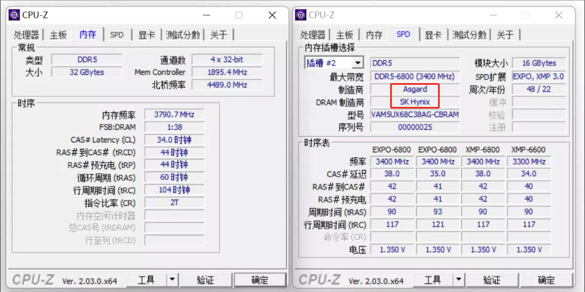 内存:阿斯加特博拉琪BRAGI DDR5 6800 16GB*2