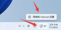第一步,右键右下角网络图标,打开“网络和internet设置”(如图所示)。