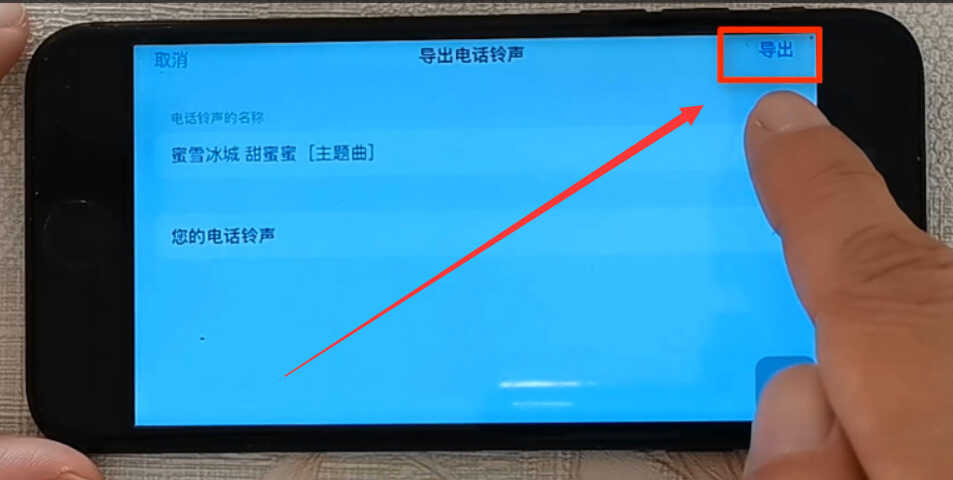 在这个界面,我们点击右上角的“导出”按钮,这个时候,手机就开始把这个歌曲导出为电话铃声(如下图)。