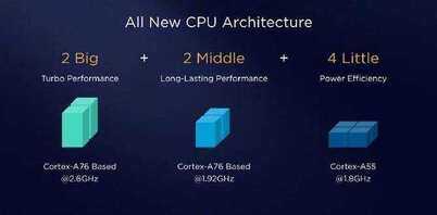 | 频率 | 2×Cortex-A76 Based 2.6GHz+ 2×Cortex-A76 Based 1.92GHz + 4×Cortex-A55 1.8GHz |