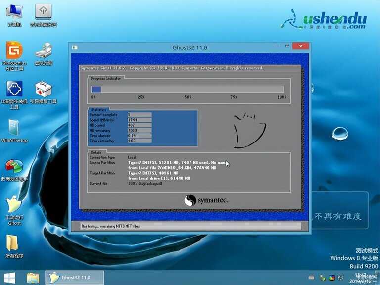 就正在安装的步骤,系统提示,在系统后重启后,那个纯净版的系统就装好了