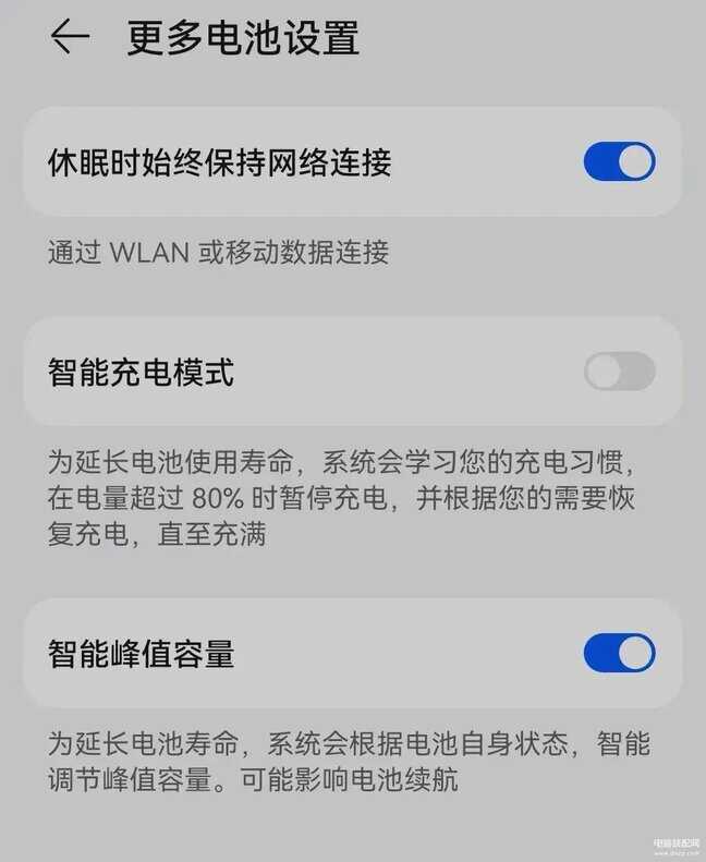 关闭途径:设置→电池→更多电池设置→关闭智能充电模式。