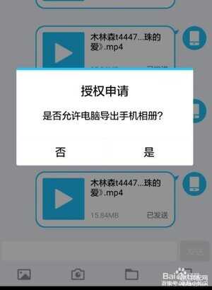 - 如图所示,在电脑上点击导出手机相册。在手机上点“是”。