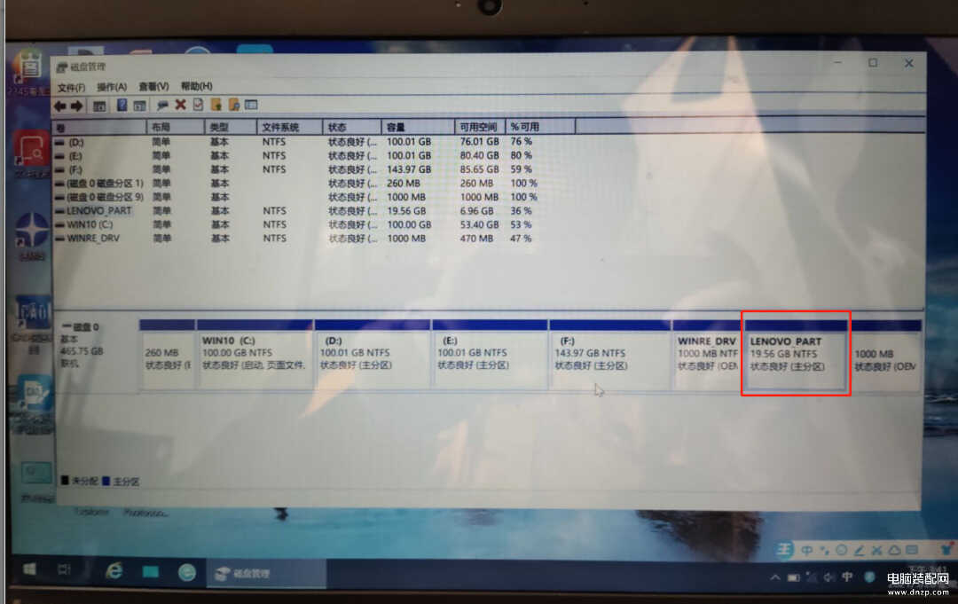 查看出厂时电脑自带的还原分区还在不在?打开磁盘管理器,发现客户的电脑里面,系统恢复分区还是在的,那就方便多了。