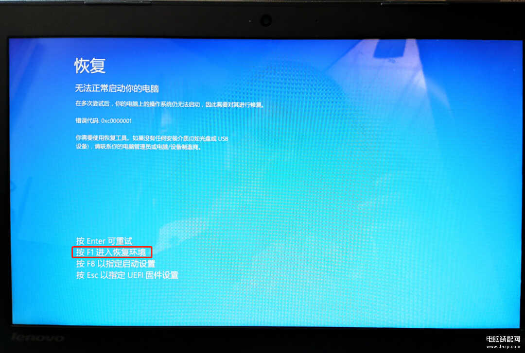 强制关机,多按几次,出现如下图所示,恢复界面,选择按F1进入恢复环境。