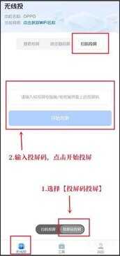 接下来我们打开手机端,在【无线投】中找到【扫码投屏—投屏码投屏】,然后把电视屏幕上的投屏码输入到指定区域中,输入完成后点击【开始投屏】。稍微等待一段时间后,手机画面会出现在电视屏幕上了,这时我们再来进行分享就非常方便了。
