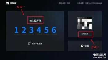 首先我们需要在电视上打开工具,打开工具后能看到屏幕上会出现两种投屏方式,无论是哪一种都可以实现投屏,我们这里就以投屏码投屏为例。