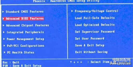 1、重启电脑,按快捷键进入BIOS设置界面,然后选择“Advanced BIOS Features”。