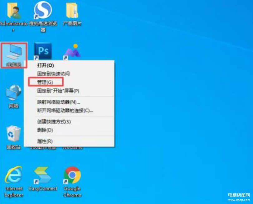 1、在电脑的桌面上找到【此电脑】图标,选择【管理】。
