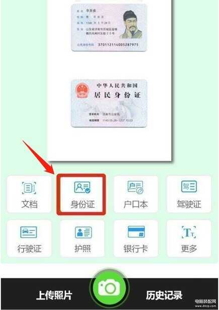 点击下方“上传照片”或者“拍照”按钮,可以看到这里根据使用场景,预设了多种拍身份证的情况: