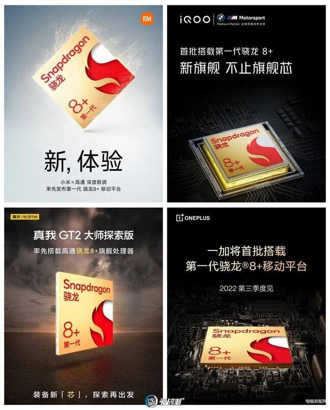 发布会提到小米会率先搭载新一代骁龙8+,而iQOO、真我GT2 大师探索版、一加新旗舰(第三季度)会首批搭载骁龙8+。而moto也有对应海报,不过没提首发字眼。