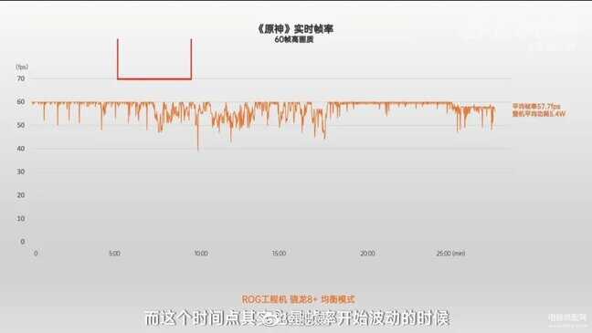 高通宣称原神功耗下降30%,其甚至放出了著名“卡牌类跑分软件”《原神》的帧数,宣传25度下,810P画质,游戏60分钟的平均帧率达到60.2帧(原地起立!),宣称原神功耗下降30%。