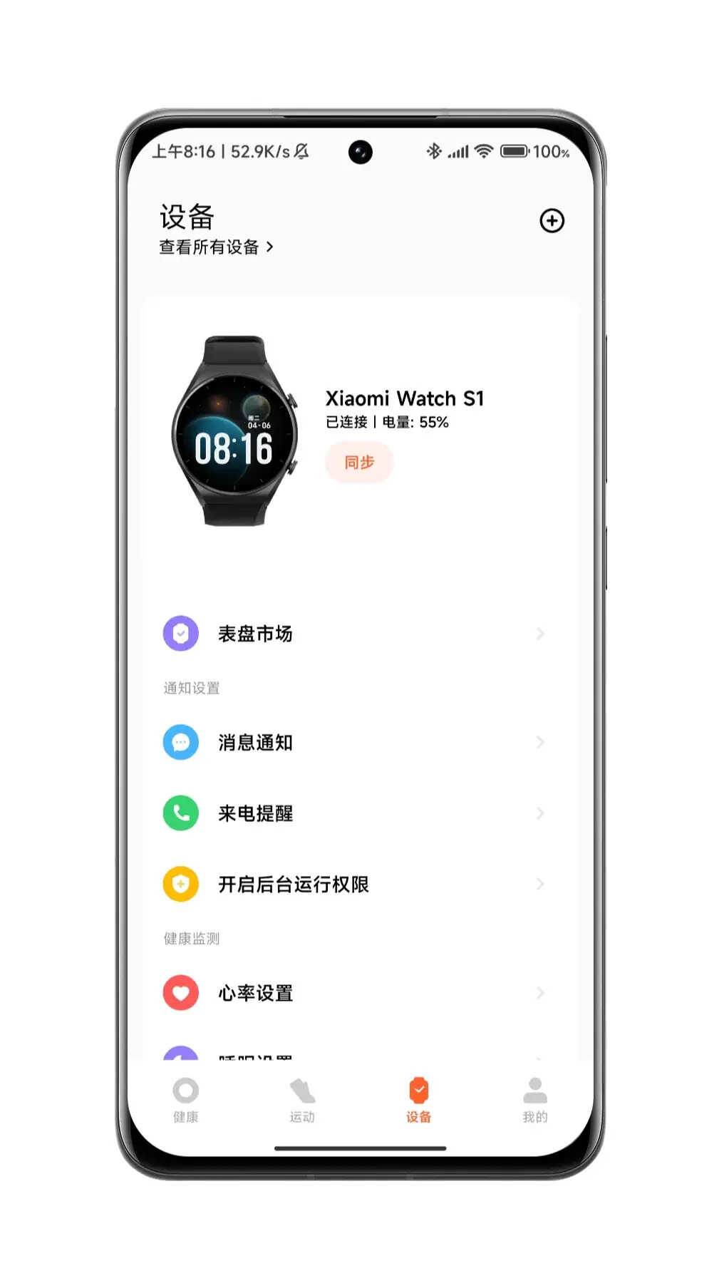 较大的表盘也带来了充足的显示面积。小米Watch S1搭载了一块1.43英寸,分辨率466 × 466,刷新率60Hz的AMOLED显示屏,整体显示效果色彩明亮、显示一些机械表盘时也很逼真。