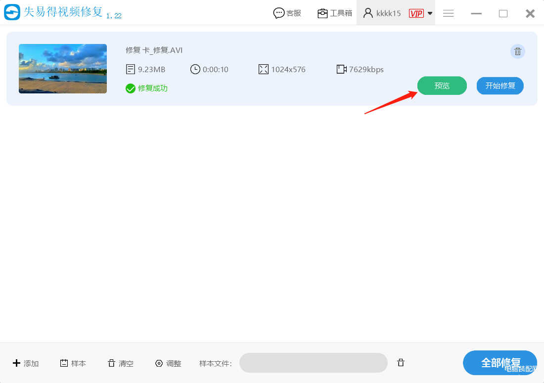 第五步:修复后可以点击“预览”。预览修复好的视频