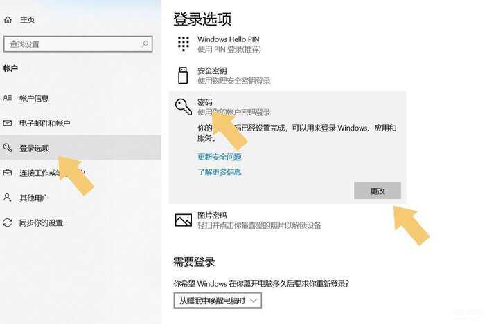 此外,部分 windows 10版本在用户界面会看到与密码有关的选项。如下图: