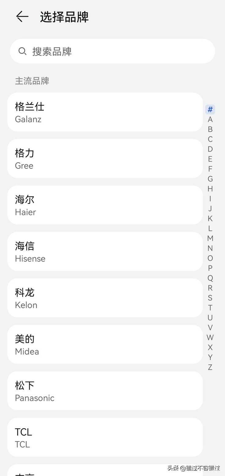 我们选择空调遥控器,进入选择要添加的空调品牌