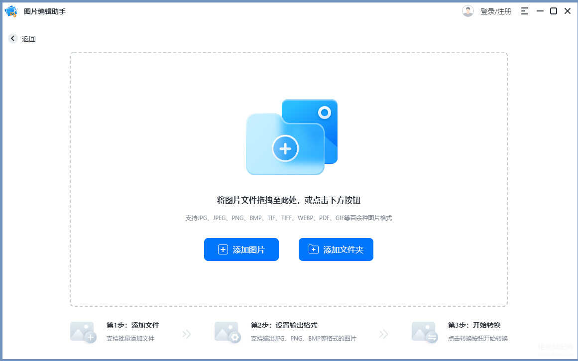 2.点击【添加图片】,如果你的图片比较多的话也可以将它们都存放于一个文件夹中直接拖动导入。