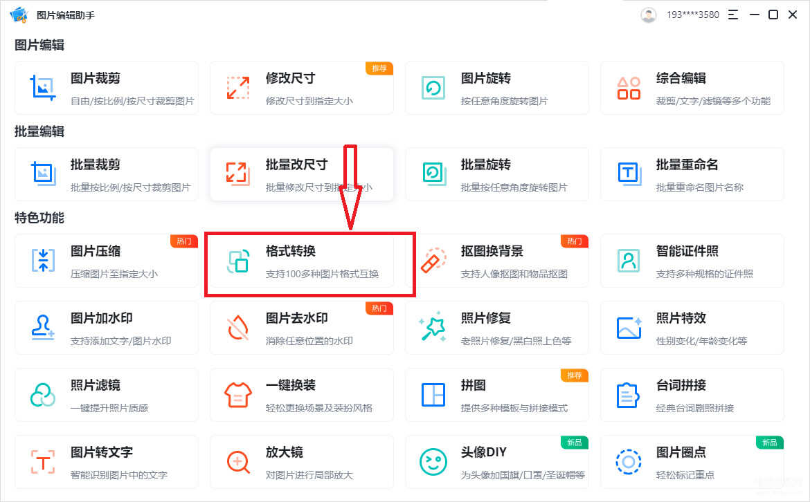 1.打开软件之后点击【格式转换】功能。