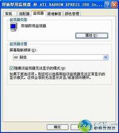 点“高级(V)”按钮,出现“即插即用监视器....”类似的对话框,点击其中的“监视器”标签,对话框如下图。