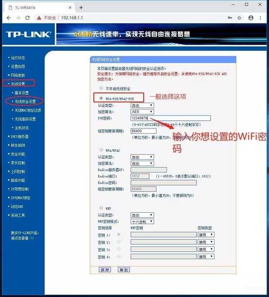 点击下面的无线安全设置 来设置WiFi连接密码