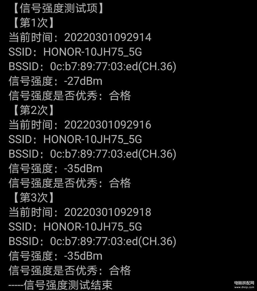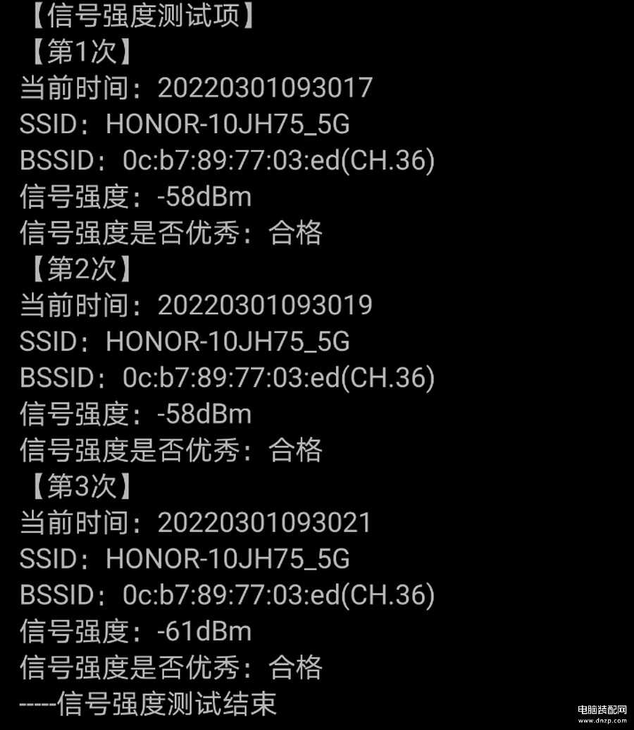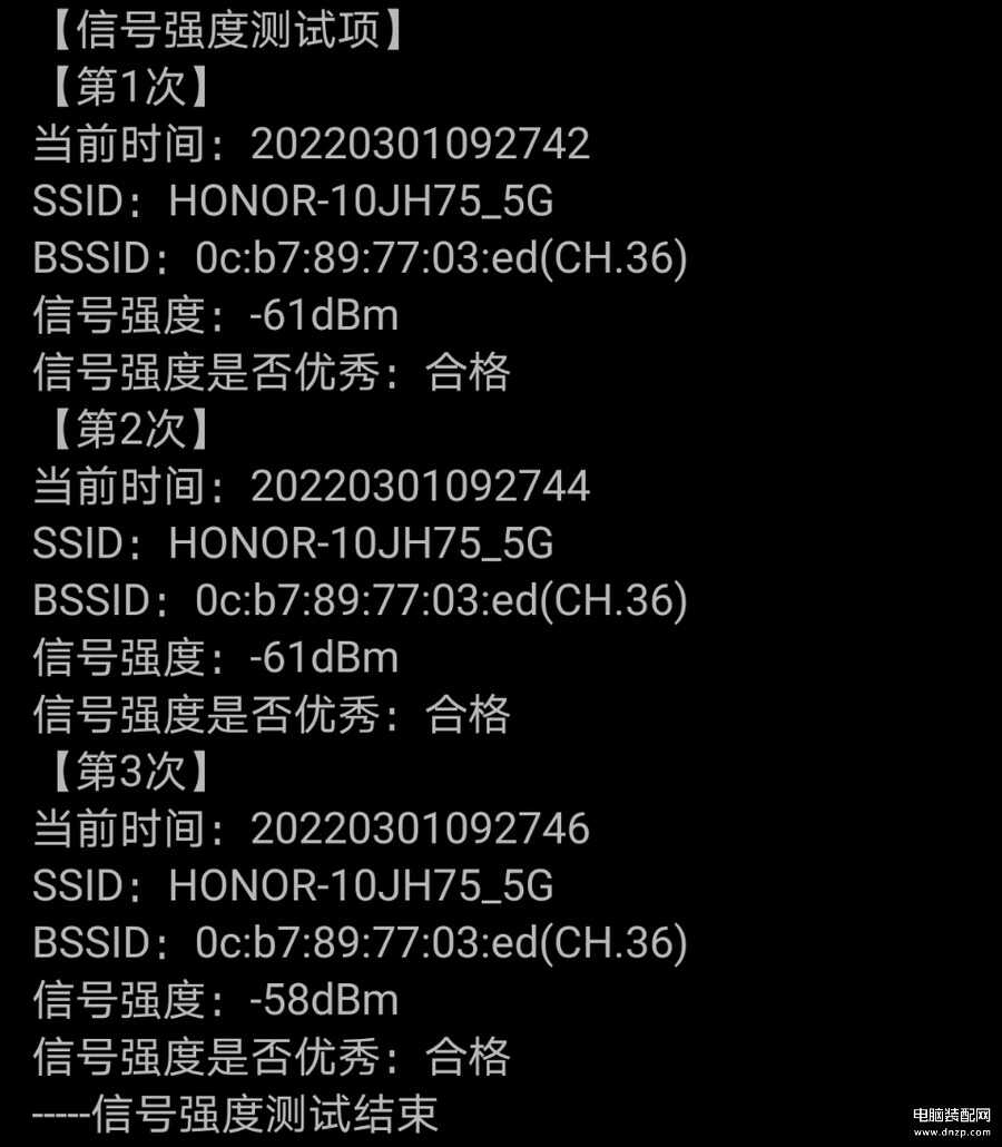 房间一与荣耀路由4 Pro间隔一堵墙,在房间一中,三次信号测试的强度在-60dBm左右,信号强度也是非常不错的。
