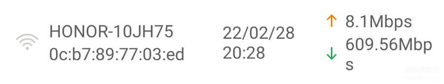 在房间一中的网速测试,上行速度为8.1Mbps,下行速度为609.56Mbps。