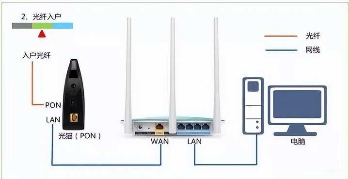 准备2根网线,一根网线用来连接光猫与路由器的WAN接口;另一根网线用来连接路由器上LAN口中的任意一个与计算机。