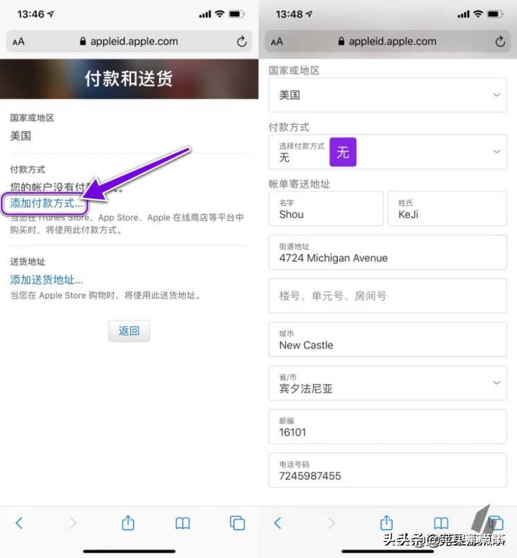 · 街道地址、城市、省、邮编、电话号码可以用网上的"美国地址生成器"生成一个,或者干脆下方图片上的信息。