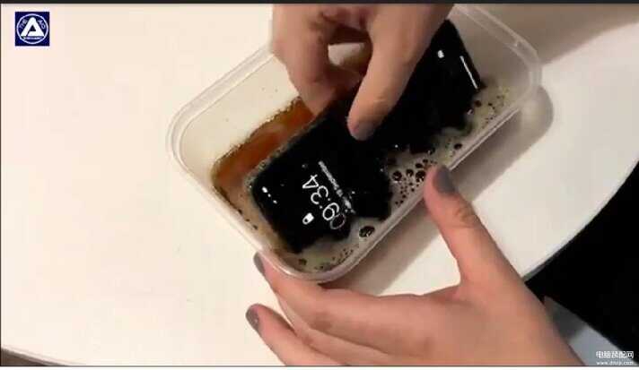 不过要注意的这个测试是在短时间内完成的,不管是泡在可乐中还是用水冲洗时间都非常短,所以短时间泡水并不会造成iPhone变砖头,并不等于可以长时间放水里