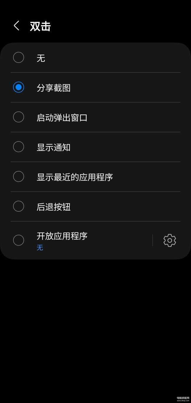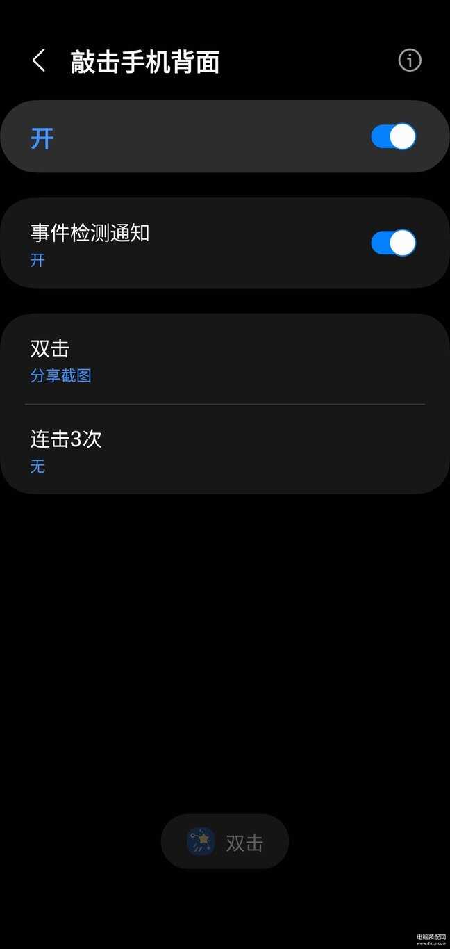 打开“双击”选项,选择“分享截图”,即可成功启用该功能。