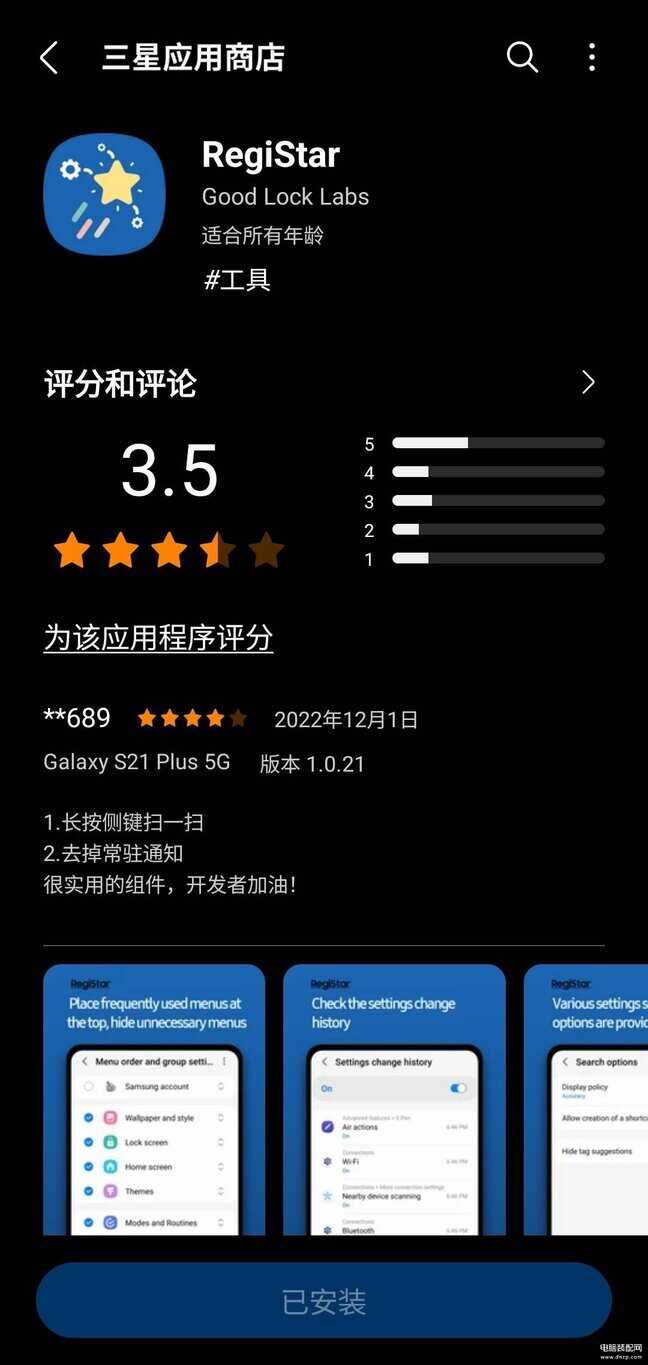 进入Good Lock之后,选择便利功能,划动到底部就能找到RegiStar了,点击后就会进入到应用市场中进行安装。
