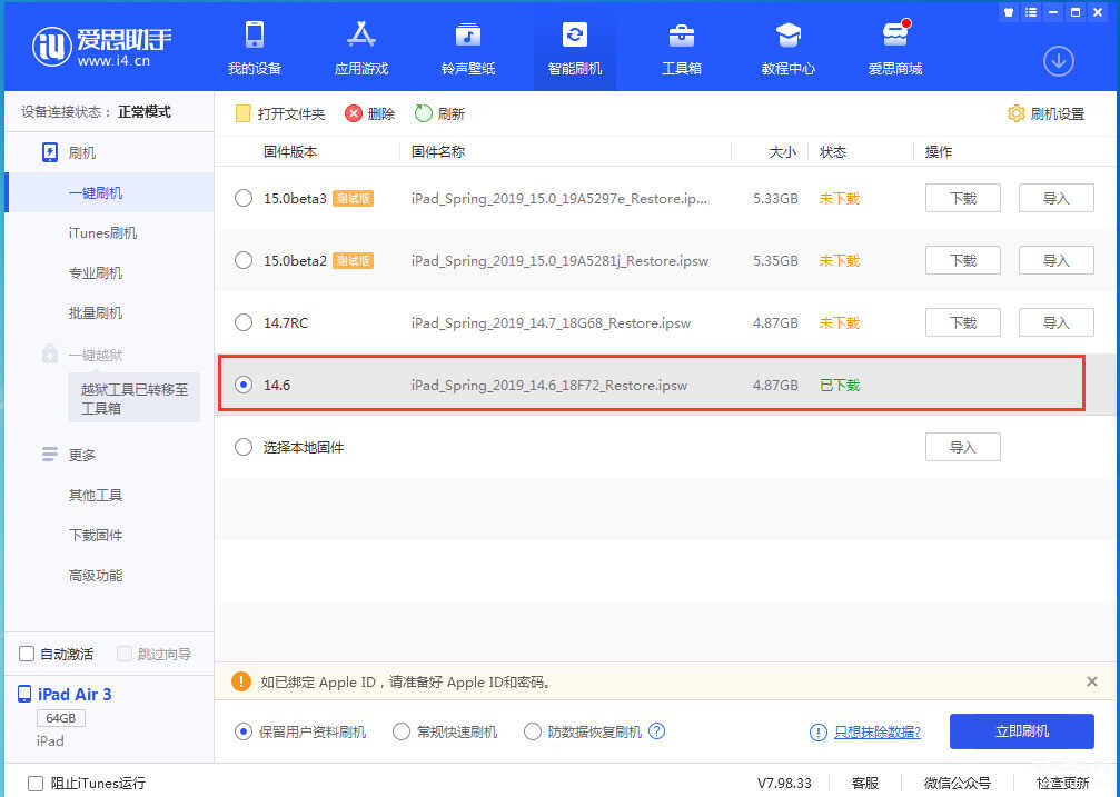 如果没有在手机开启“查找我的 iPhone”功能,可以通过爱思助手刷机来抹除锁屏密码,具体操作步骤请参考刷入 iOS14.6的方法。