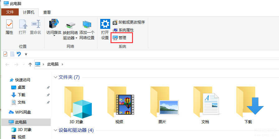 第一步:在【此电脑】里找到【系统】,双击【管理】,会弹出【计算机管理】的页面;