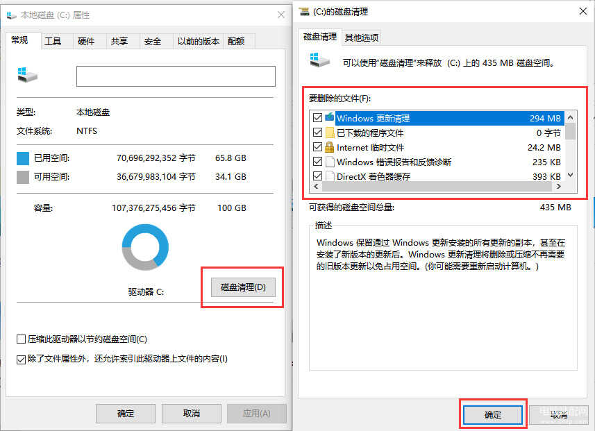 打开【此电脑】,选中【C盘】并按下鼠标右键,点击【磁盘清理】,等待加载完成,选中要删除的文件,然后点击【确定】就可以啦。