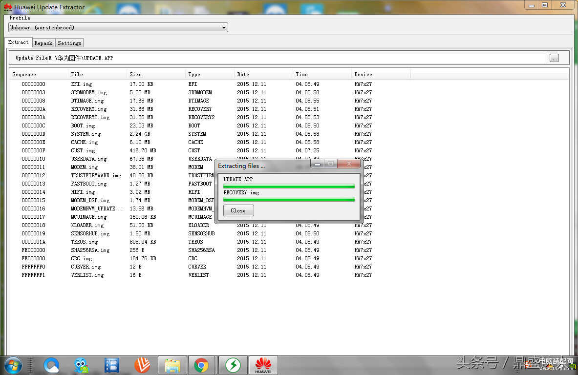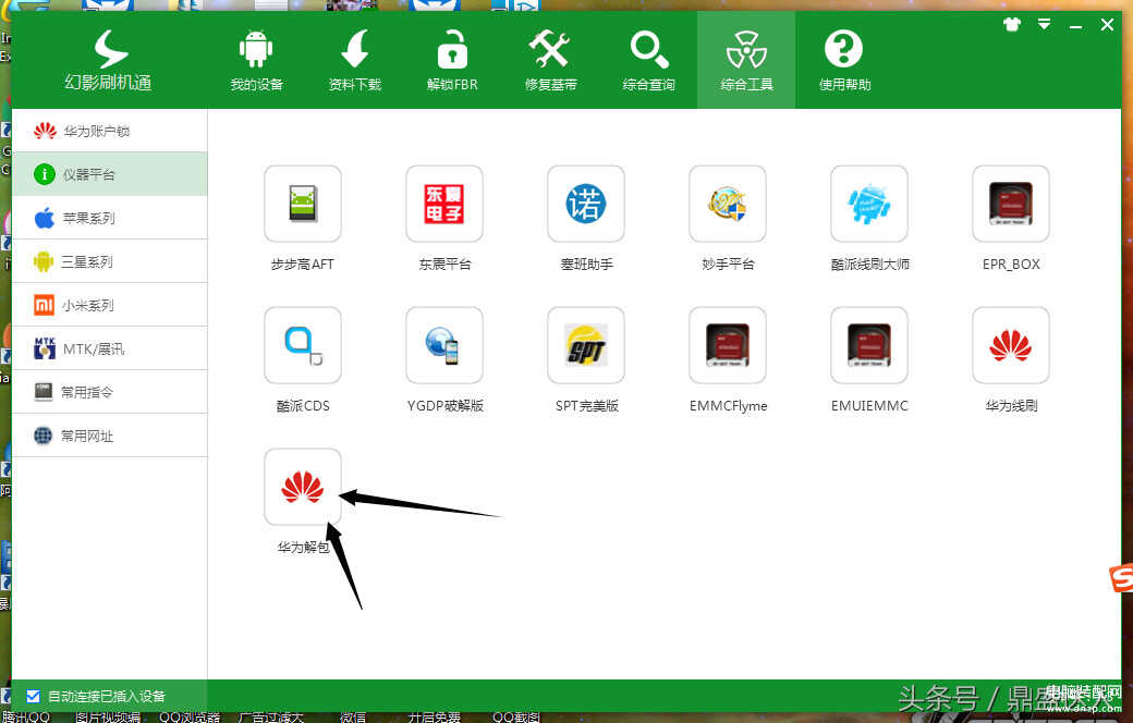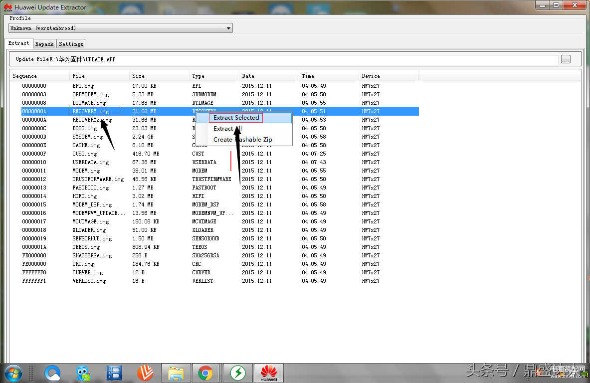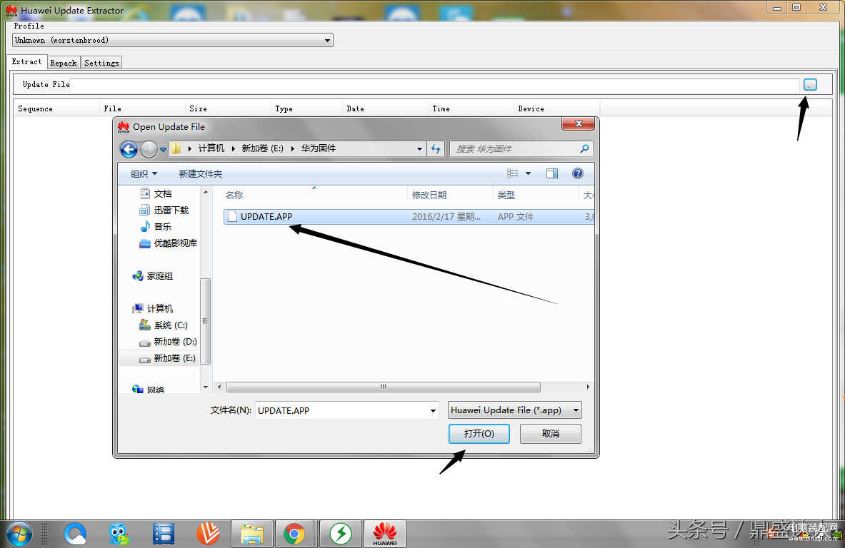 华为卡刷包解压工具。从右边箭头处选择卡刷包。