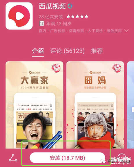 点击搜索结果,我们可以看到 APP 的介绍,以及它的安装包有多大(个别手机厂商不会显示),点击下载,就可以让APP安装到你手机啦