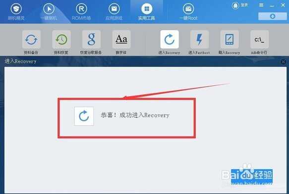 5.第五步大概2到3秒的时间左右吧,电脑显示恭喜 成功进入recovery 至此整个过程结束。