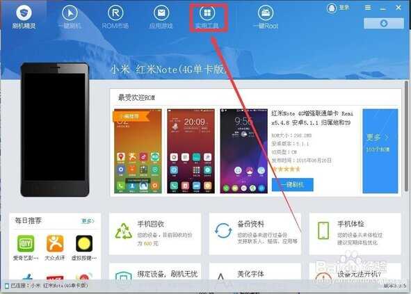 3.第三步连接成功之后我们点击实用工具箱如图所示。进入工具箱之后,我们点击进入recovery选项