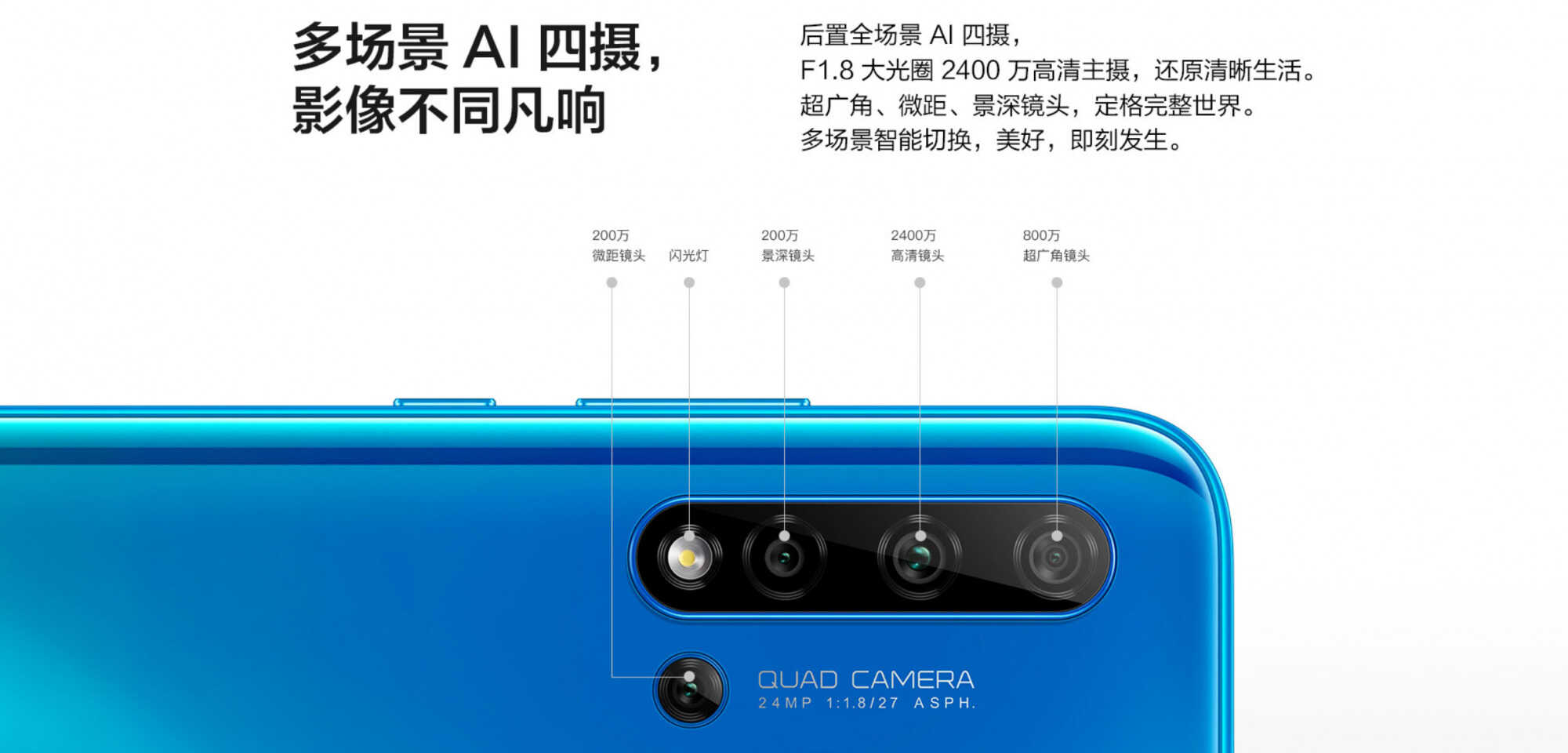 nova 5i采用了四摄像头的配置,分别是2400万(彩色,f/1.8光圈)+800万(超广角)+200万(微距)+200万像素(深度),支持自动对焦(PDAF+ contrast对焦),能满足你不同场景下的拍照需求。