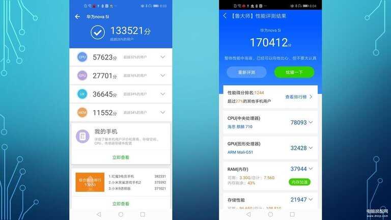 nova 5i采用最高8+128GB的内存组合,Kirin 710+GPU Turbo优化,EMUI 9.1,日常使用非常流畅。
