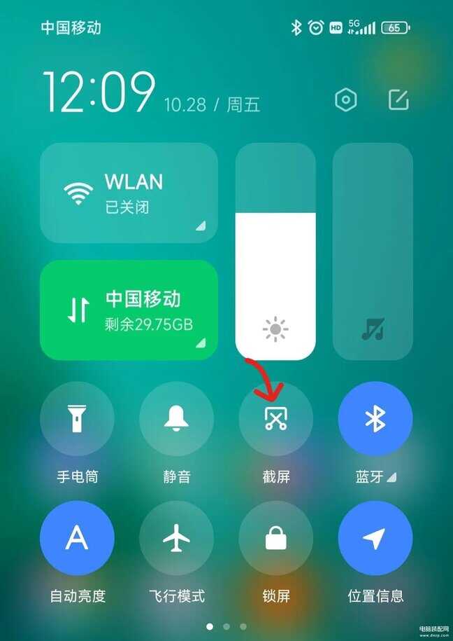 使用方法:在要截屏界面下滑出快捷菜单,点击菜单栏中的剪刀截屏图标就会自动截屏。